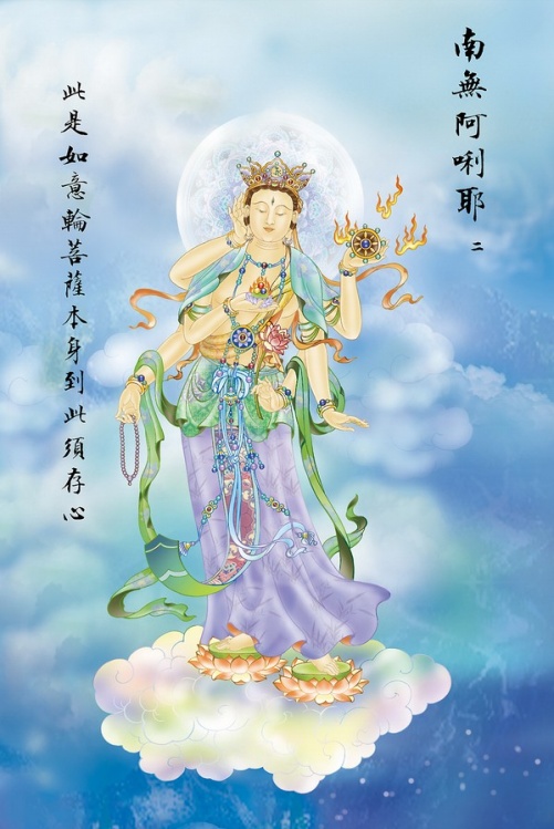 (Chính là bản thân của ngài Quán Thế Âm Bồ tát hiện tướng tay bê Như Ý Luân. Hành giả y giáo phụng hành.)