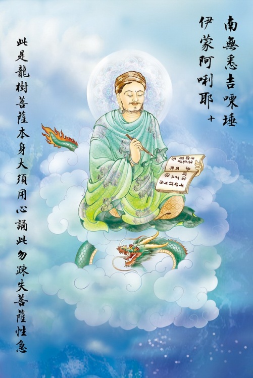(Chính là bản thân của ngài Quán Thế Âm Bồ tát hiện tướng Long Thọ Bồ tát hộ trì người tu hành, hàng phục tất cả ma oán.)