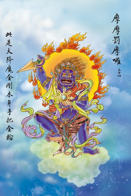 (Chính là bản thân của ngài Quán Thế Âm Bồ tát hiện tướng ngài Đại Hàng Ma Kim Cang tay cầm Kim Luân hộ trì chúng sanh đắc đại cát tường.)