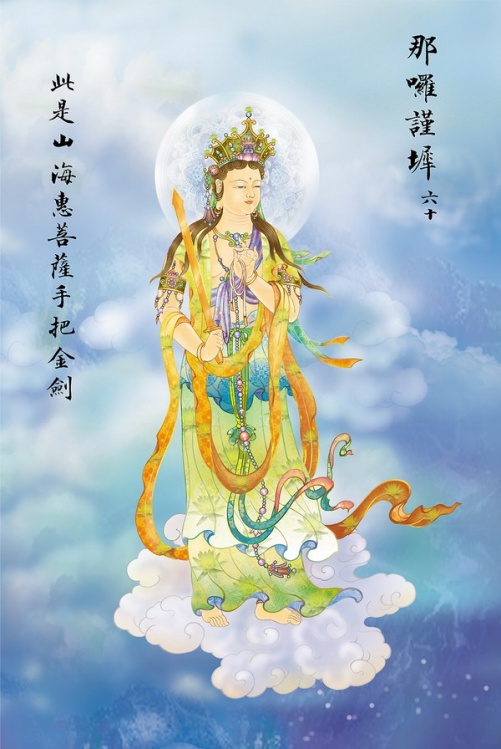 (Chính là bản thân của ngài Quán Thế Âm Bồ tát hiện tướng ngài Hải Huệ Bồ tát tay cầm kiếm vàng hóa độ thánh giả Tiểu Thừa.)